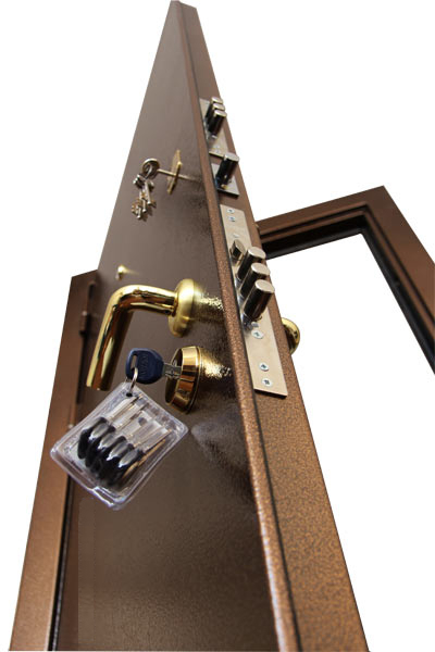 Основной замок: "Guardian 32.01" - 3-х ригельный, цилиндровый замок с броненакладками. Класс взломостойкости 4(высший);