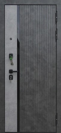 Внешнее покрытие: фрезерованная МДФ-панель 12 мм., цвет «Бетон светло серый», вставка из черного стекла Лакобель