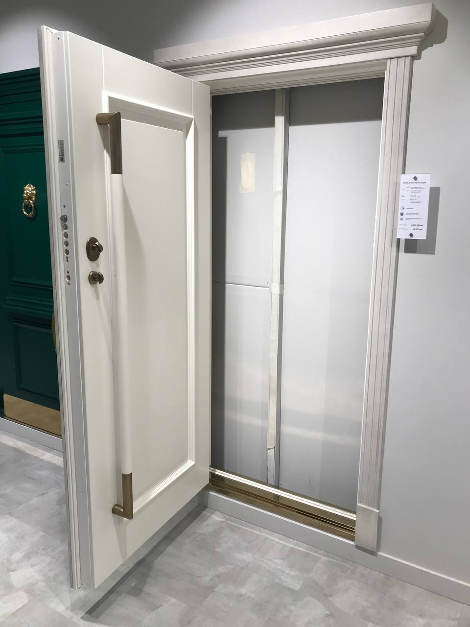 Внешнее покрытие: фрезерованная МДФ-панель (16 мм) + МДФ-наличники, Эмаль цвет Белое дерево;