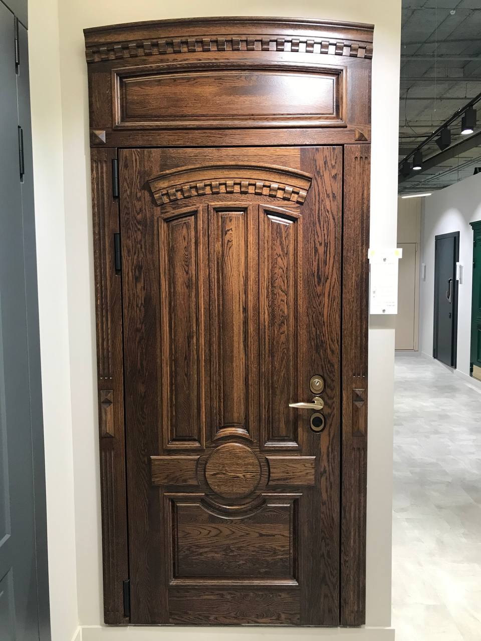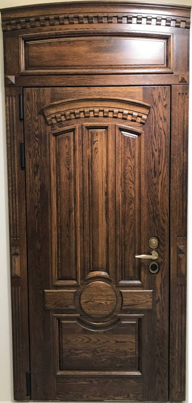 Внешняя отделка: объемная панель Массив дуба (22 мм) + патинирование;